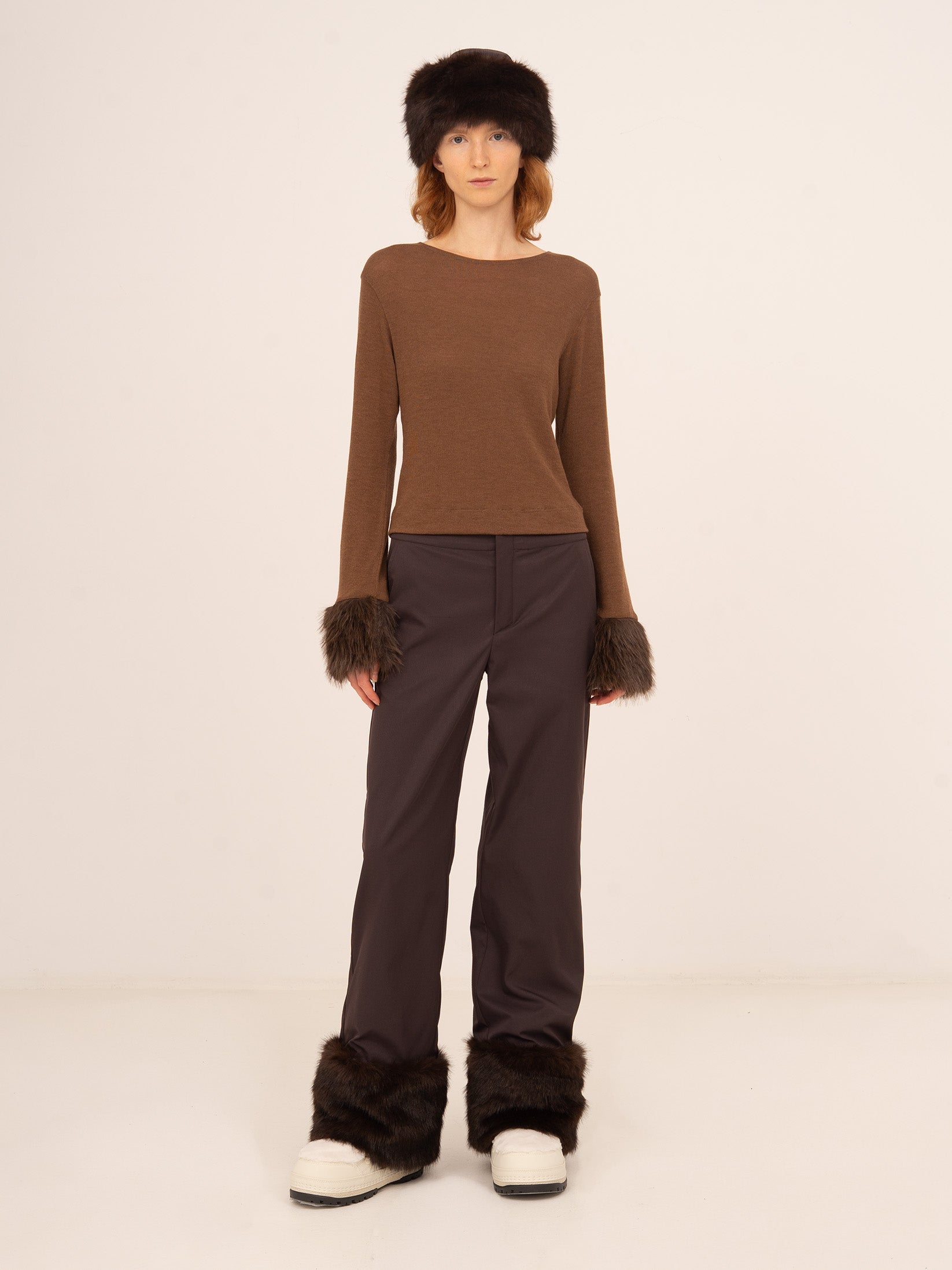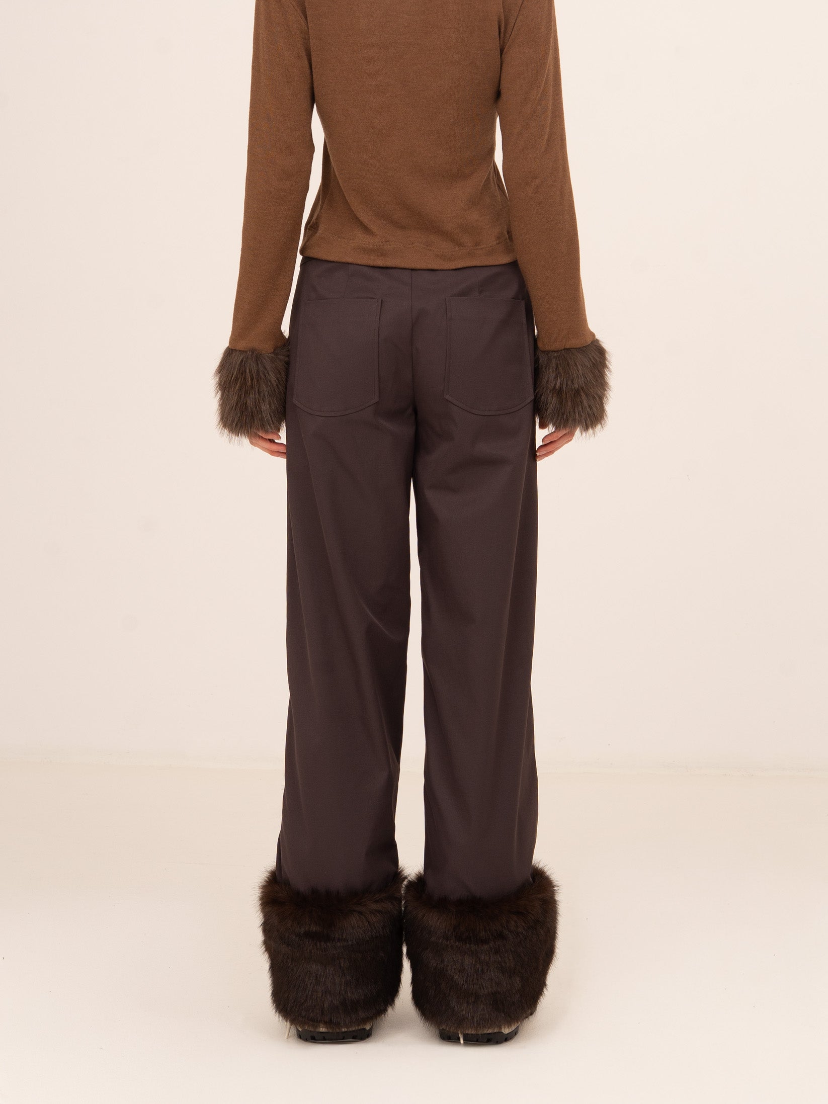 Pants technical fabric with fur detail at the bottom. Opening through button metal and zipper forwards.