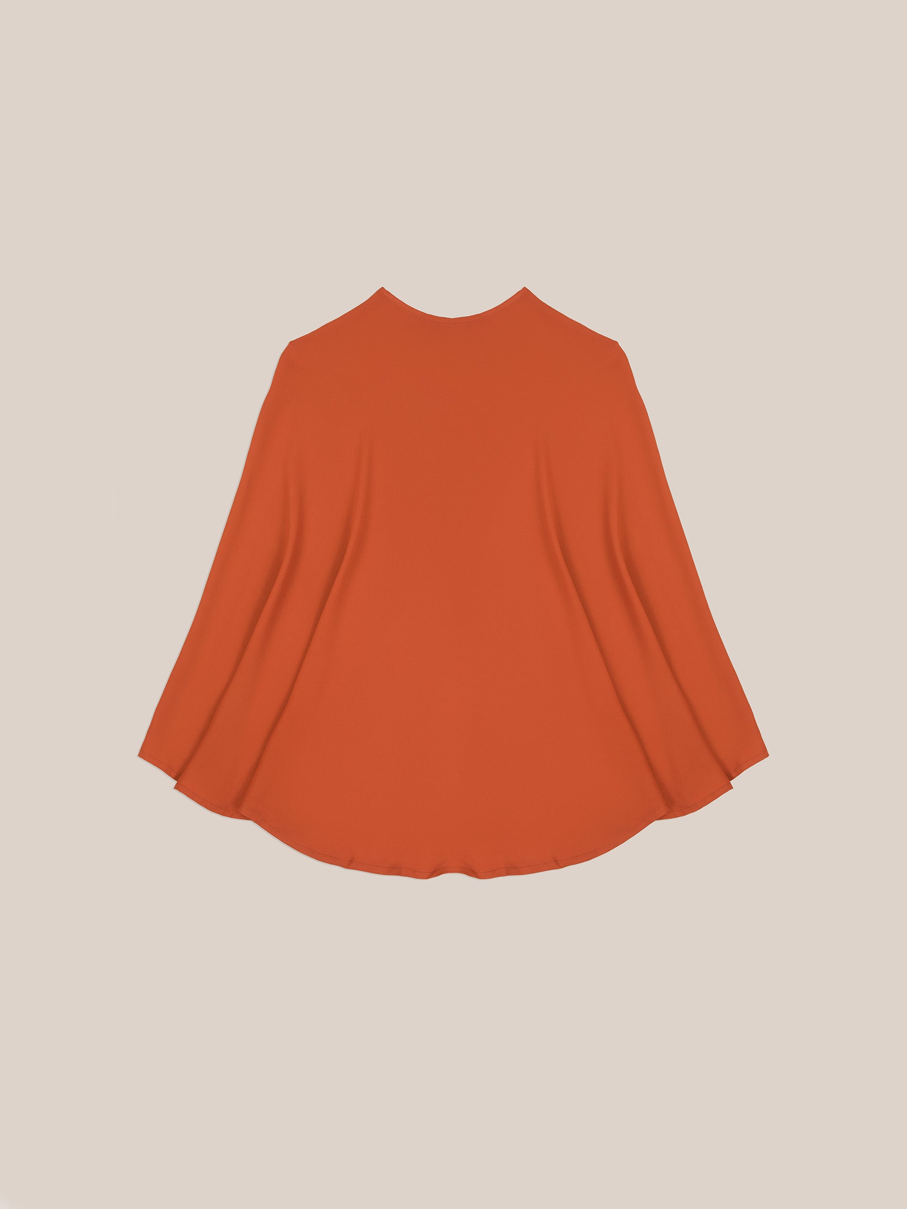 With its sophisticated, wrap-style design, this cape stands out for its fluid silhouette and back tie closure, which adds a delicate and feminine touch. The vibrant orange hue brightens any outfit and adds a contemporary flair, making it a versatile piece that enhances both monochromatic ensembles and bolder combinations.