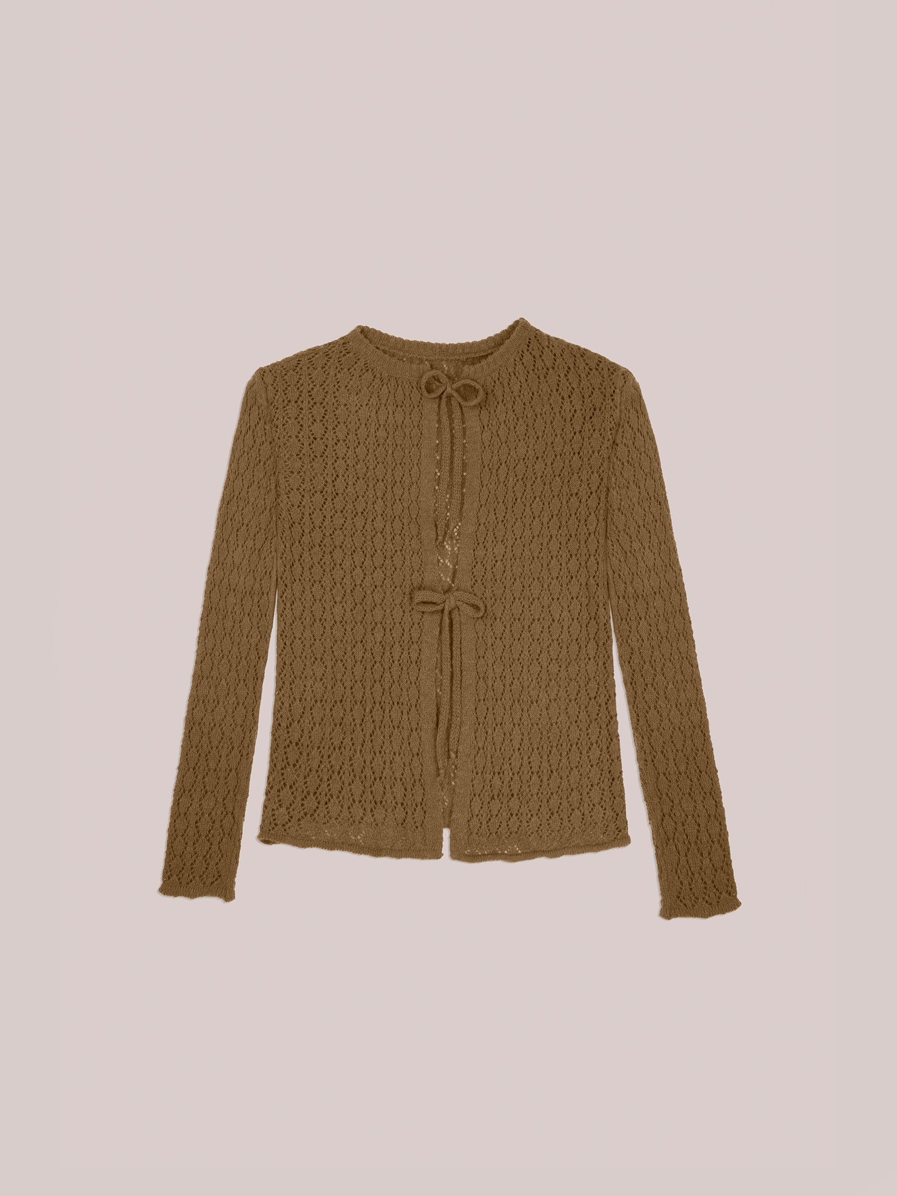 The Exile knit cardigan is made from a soft, comfortable knit fabric that moves with you easily. Its front tie closure adds a delicate, feminine touch, lending originality to a classic design.