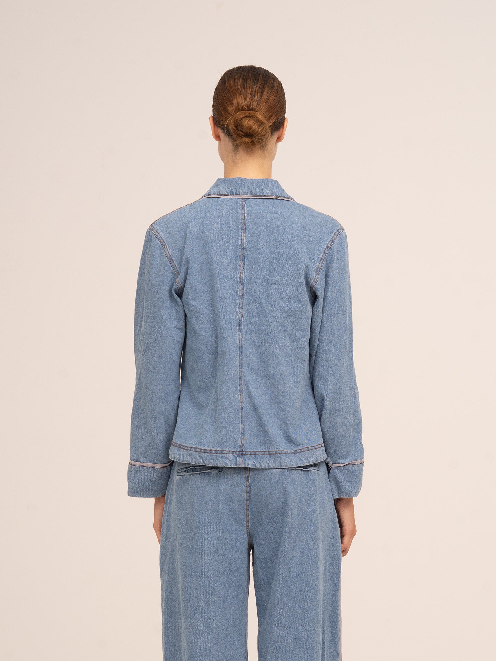 Fitted and elegant denim jacket in blue denim with contrasting details.