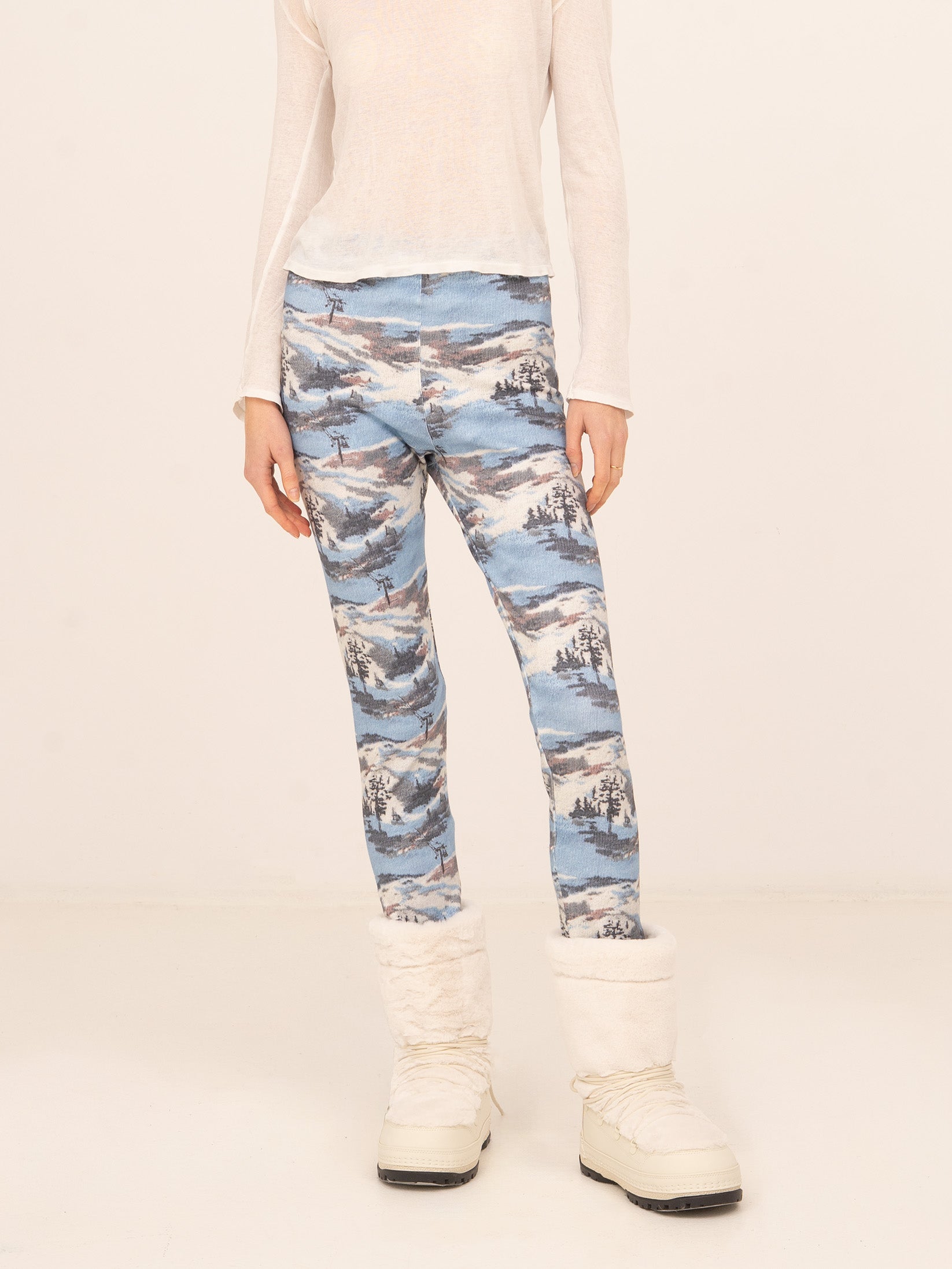 Elastic tights with a themed print of ski , with elastic at the waist .