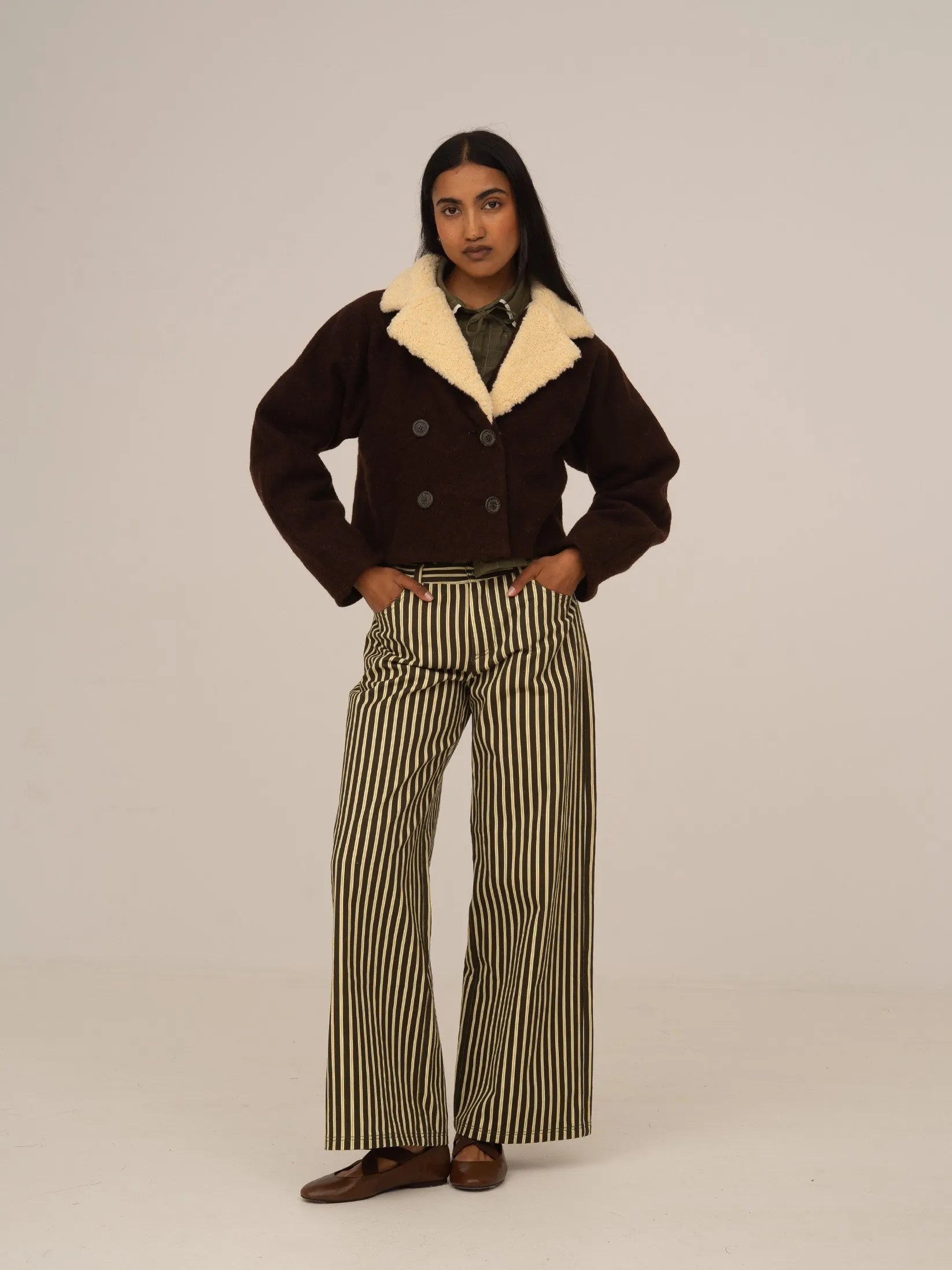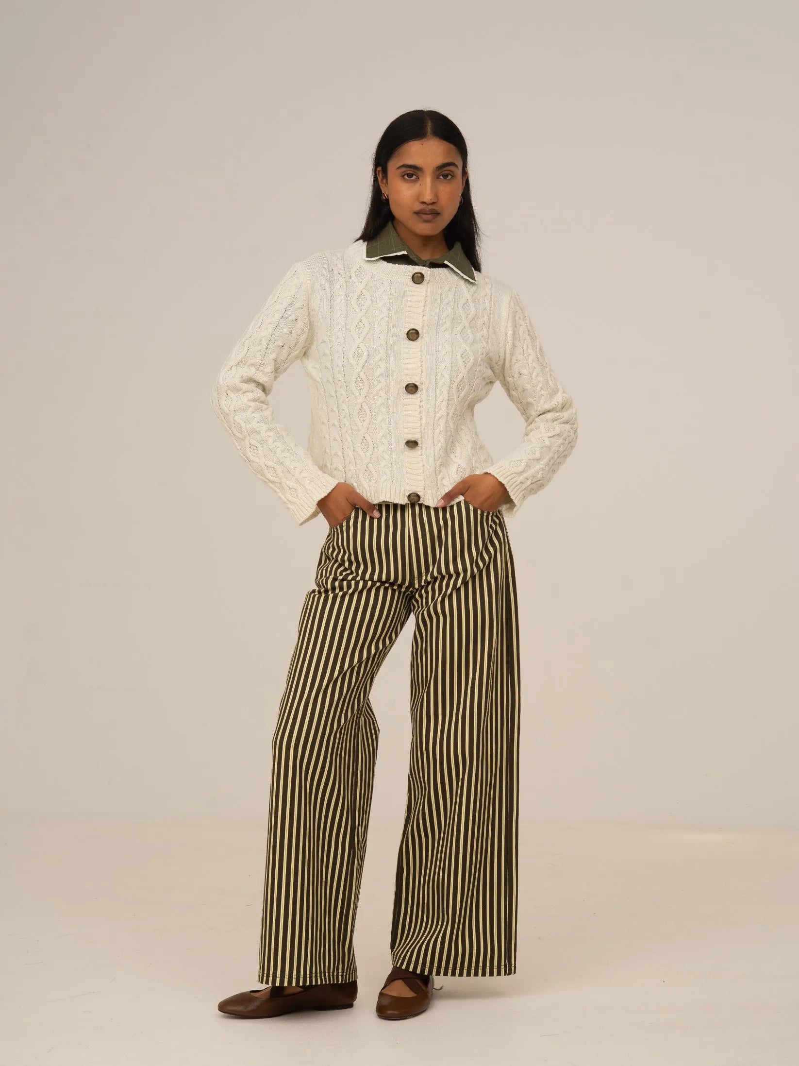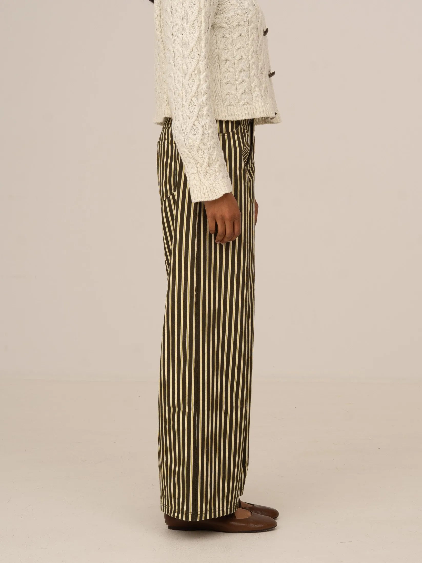 The Pebble green striped jeans reinterpret classic denim with a vertical stripe design that flatters the figure and adds a sophisticated touch. Their relaxed fit and durable fabric construction offer comfort and freedom of movement, while the zip fly and button closure provide a modern finish. Perfect for pairing with structured shirts or knit sweaters, these green striped jeans are a sure bet for urban looks with a stylish yet relaxed feel.