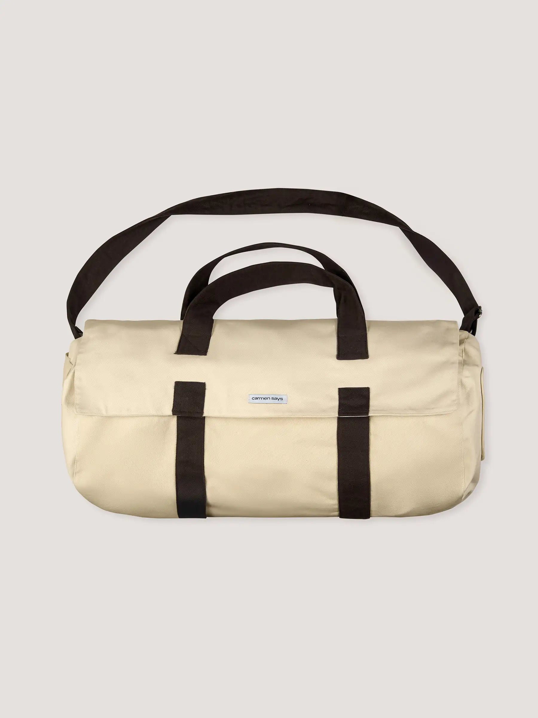 Bolsa deportiva beige y marrón, práctica y versátil para el día a día.