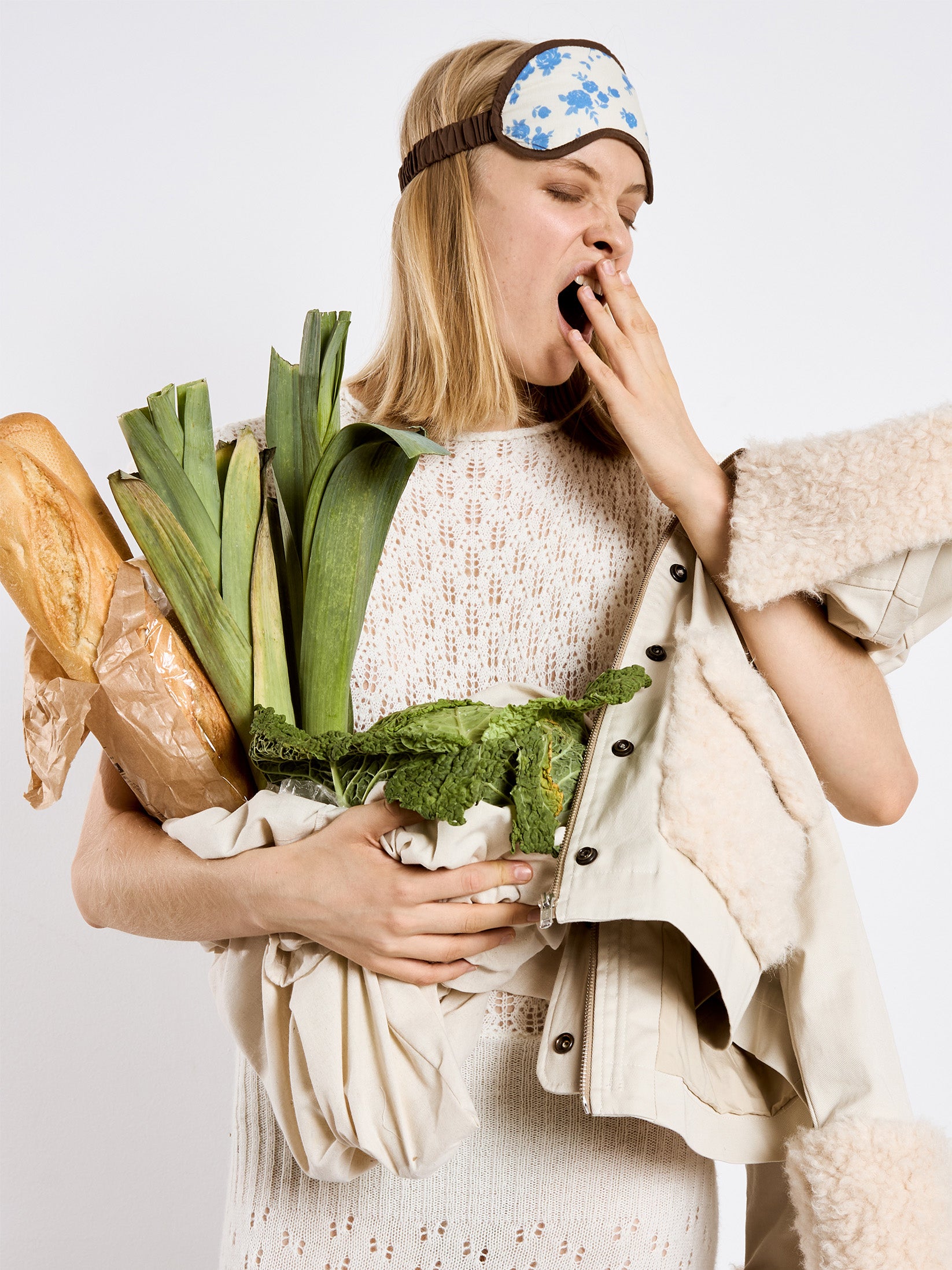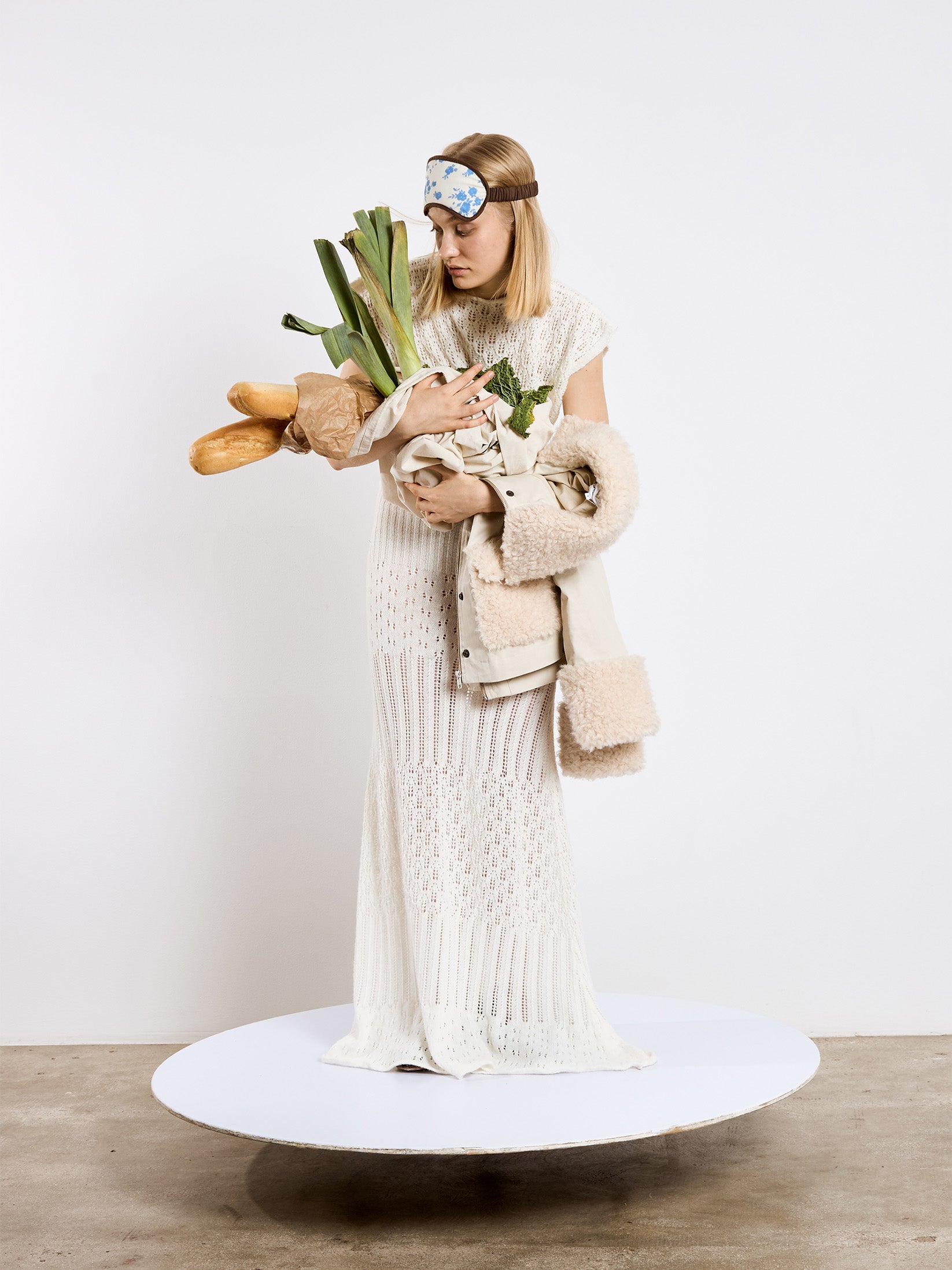 Polina mide 171 cm y lleva la talla S. La prenda talla de forma normal.