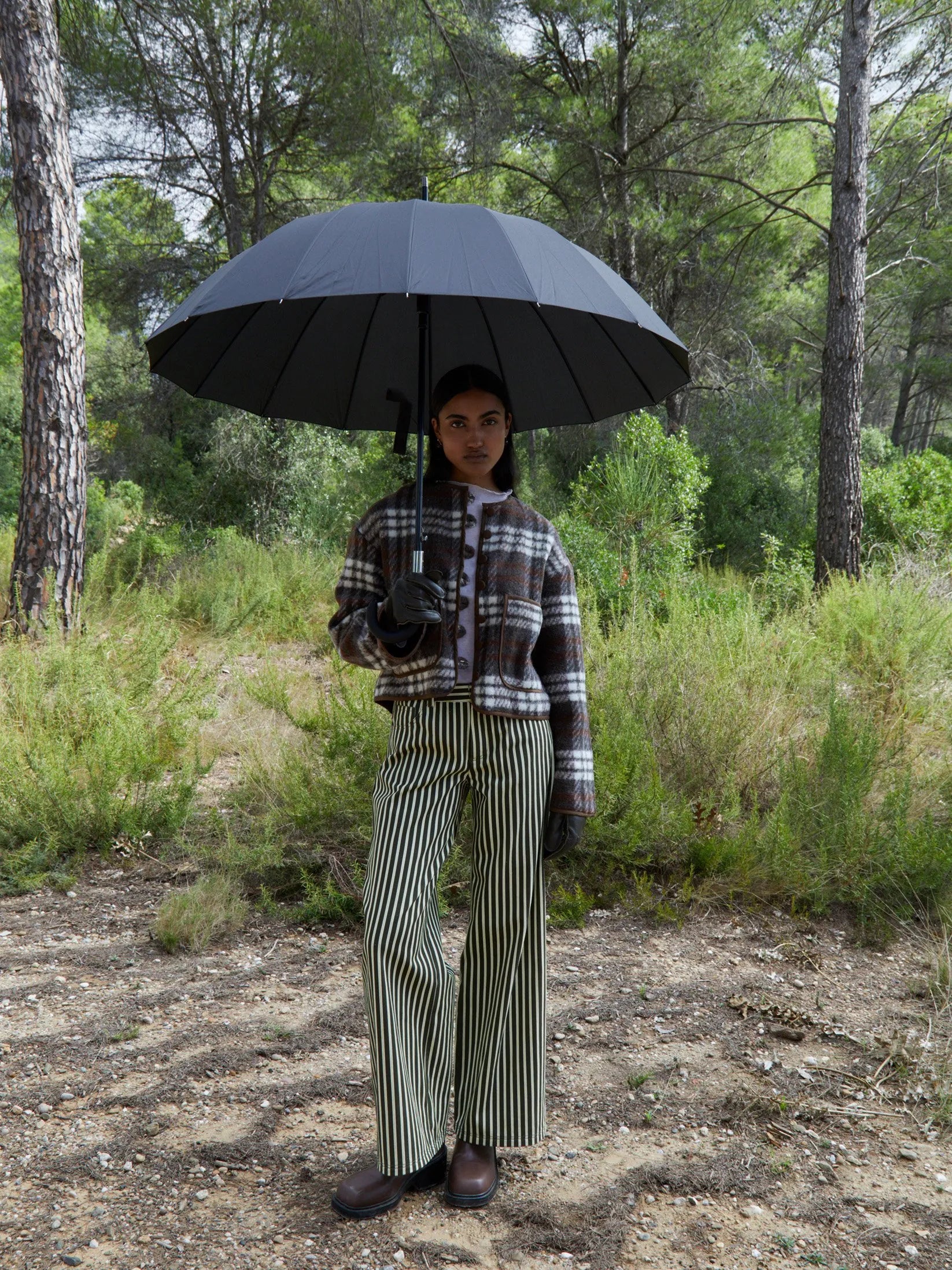 Confeccionada en un suave tejido de cuadros en tonos marrones, laChaqueta de cuadros marrón combina calidez y sofisticación. Su diseño estructurado presenta un cierre con ojales y botonadura central, rematado con un delicado vivo al tono que aporta un toque pulido y refinado.