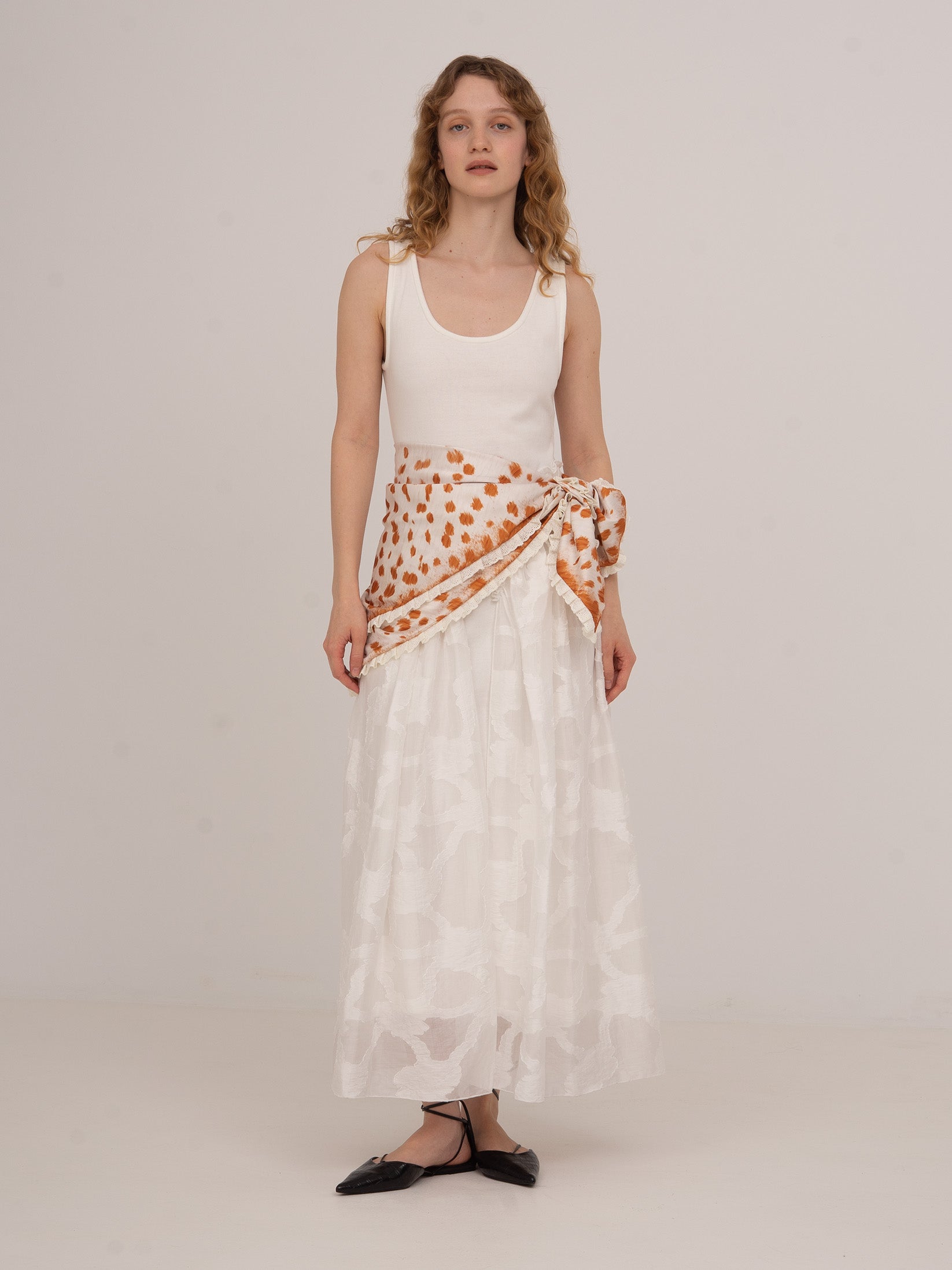 Pañuelo grande en estampado de ciervo en tonos marrones y blancos. Pulido con fornitura fruncida. Talla única